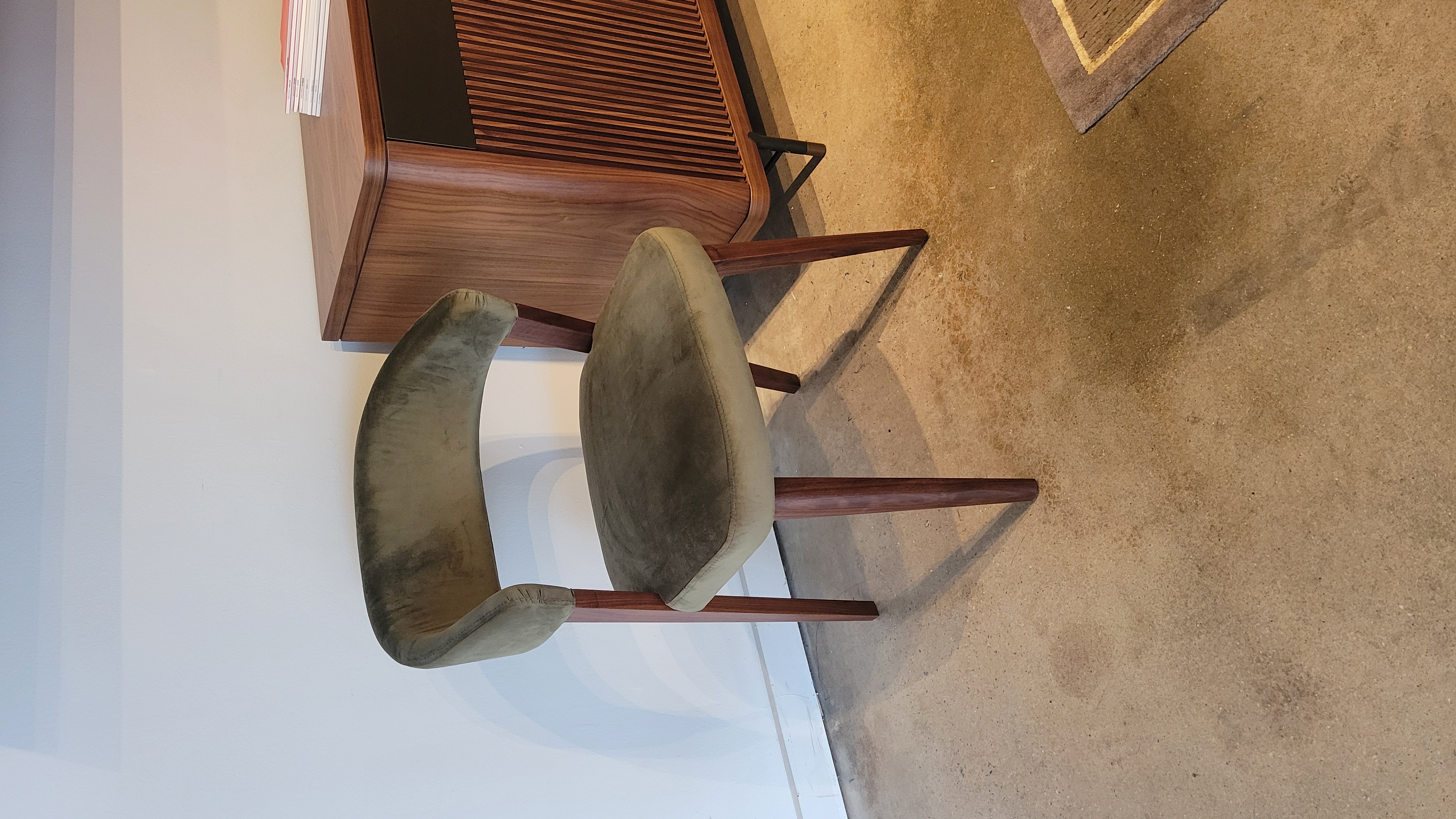 4x Newport Side Chairs ; Finish: Walnut w/ Fabric Paris Forest; Dimensions: W20 1/2" x H32" x D23 5/8" ; Email: info@planumfurniture.com if you are interested