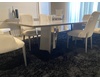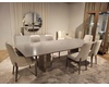 Finish: Top in Eucalyptus Plain Stain - Argento w/ Base in Cappuccino lacquer and Polished Stainless Steel Accents;