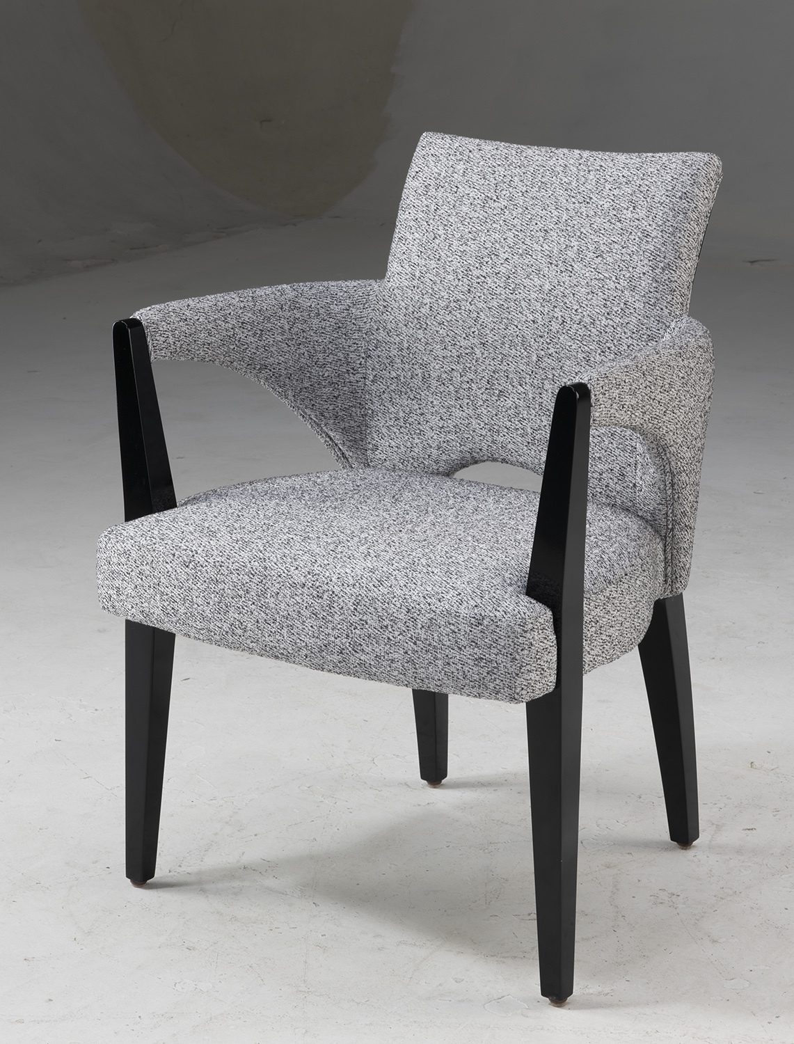 Finish: Legs and back in in Black Lacquer w/ Fabric Ladago #19;