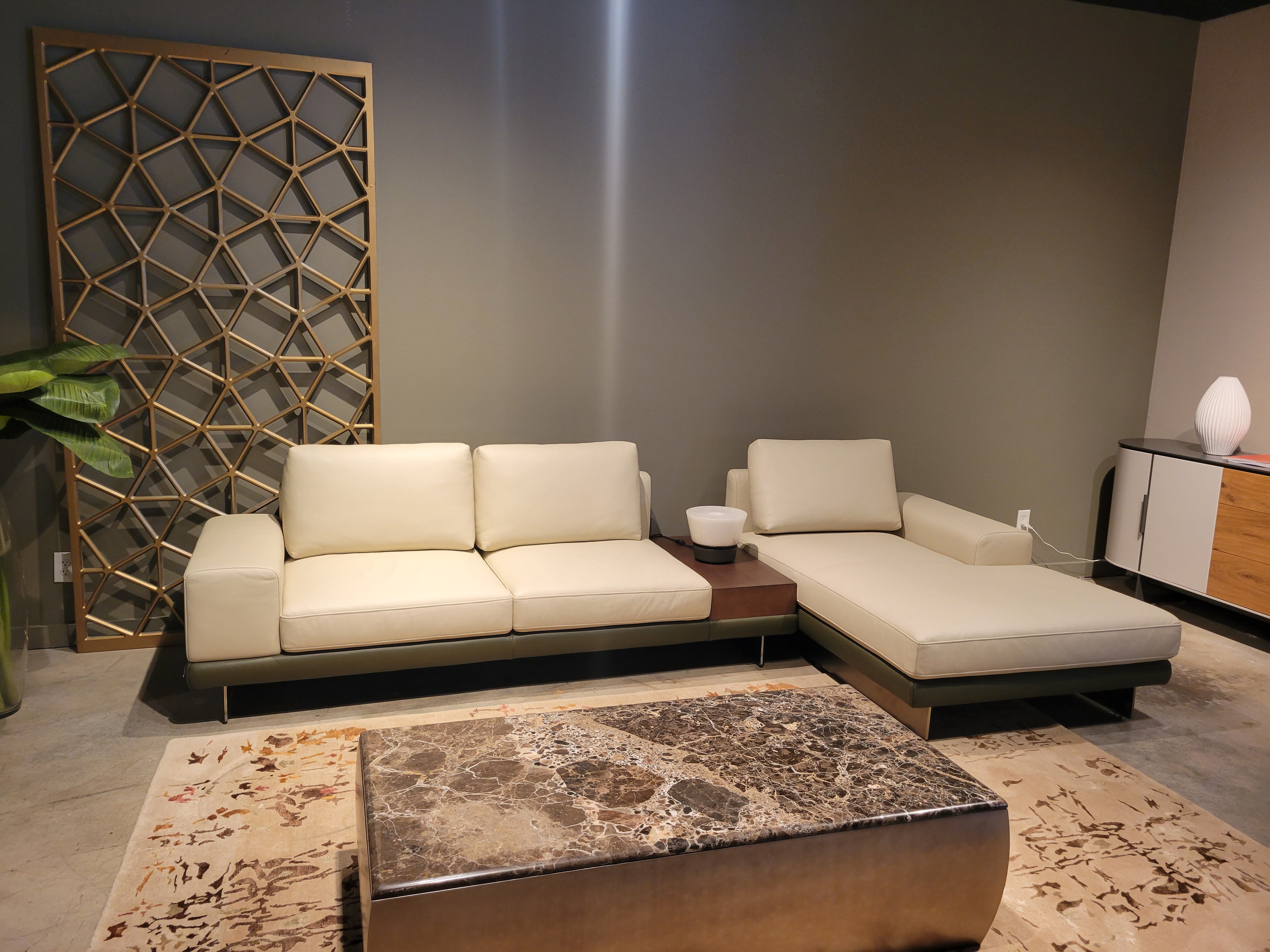 Finish: Leather Grade C Eurosoft 7564 w/ Plinth in Leather Eurosoft 7520, Wooden Platform in CVL17 & Metal Legs in Champagne;