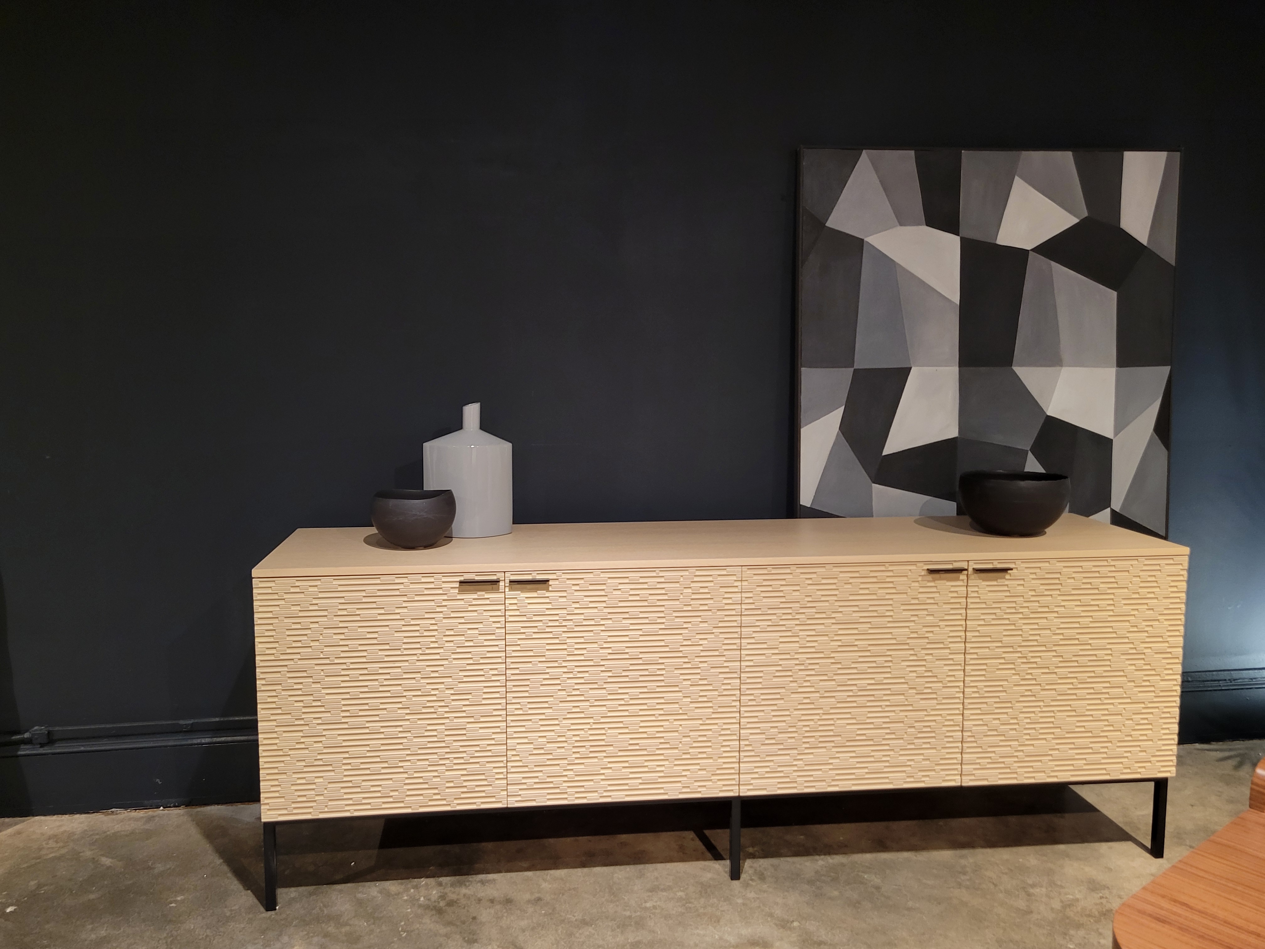 Brooklyn Sideboard, 4x Doors; Finish: Oak Stained White w/ Black Metal Legs and Handles ; Sideboard Dimensions: W94 1/2" x H30 3/4" x D21 5/8" ; Email: info@planumfurniture.com if you are interested