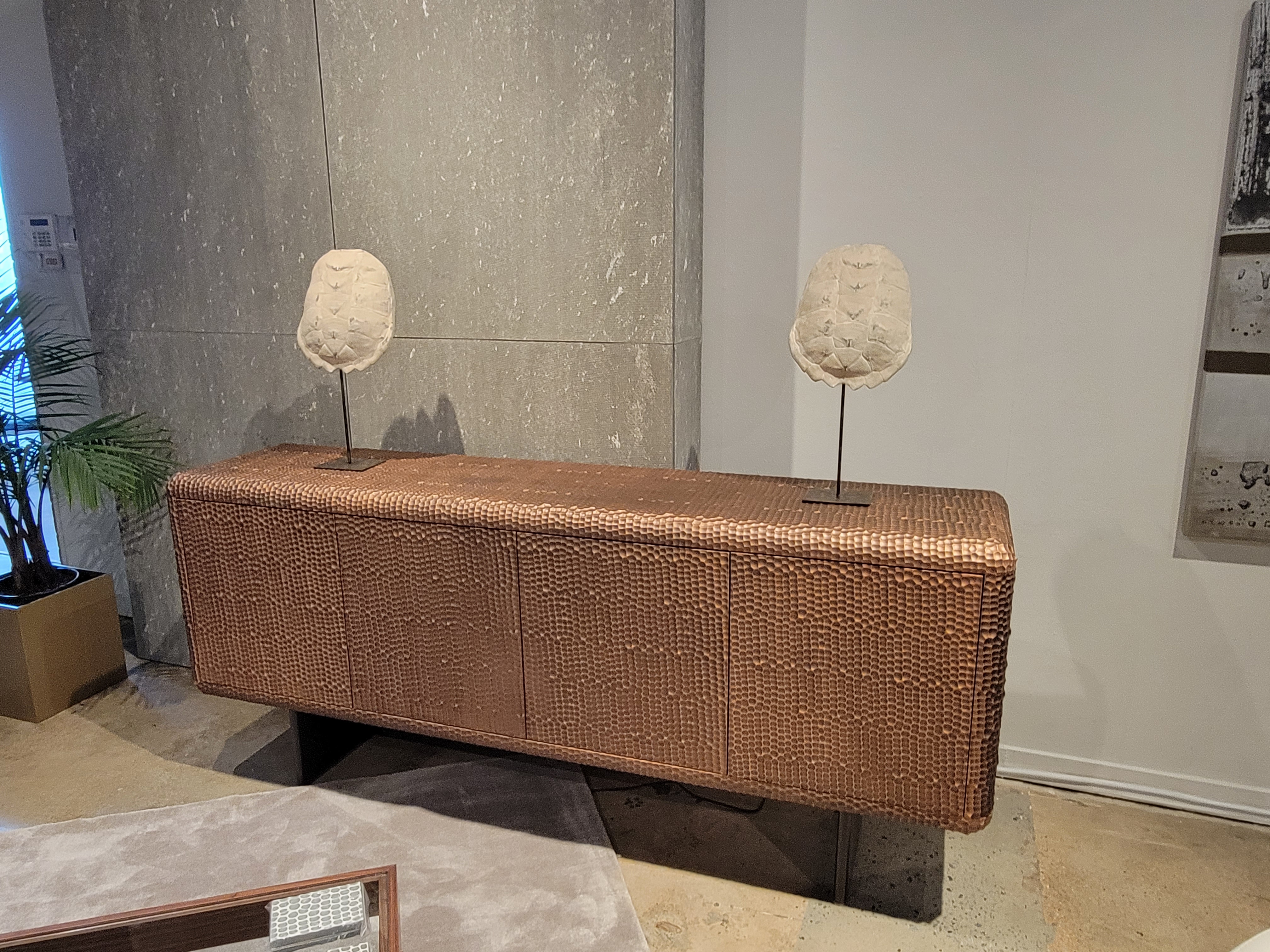Sahara Sideboard ; Finish: Metallic Copper Lacquer w/ Legs in RAL # 8019 ; Sideboard Dimensions: W83 1/2" x H35 1/2" x D19 5/8" ; Email: info@planumfurniture.com if you are interested