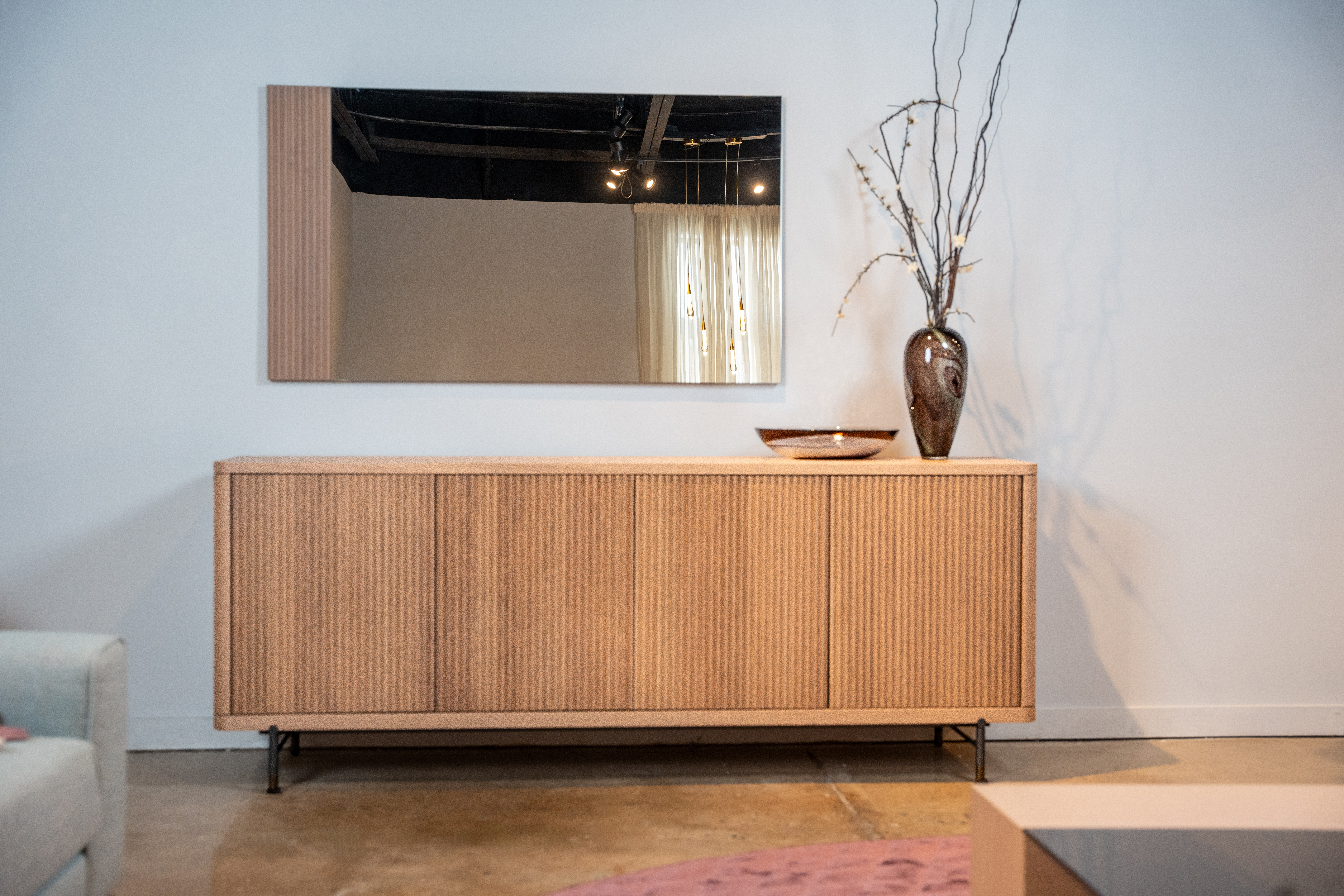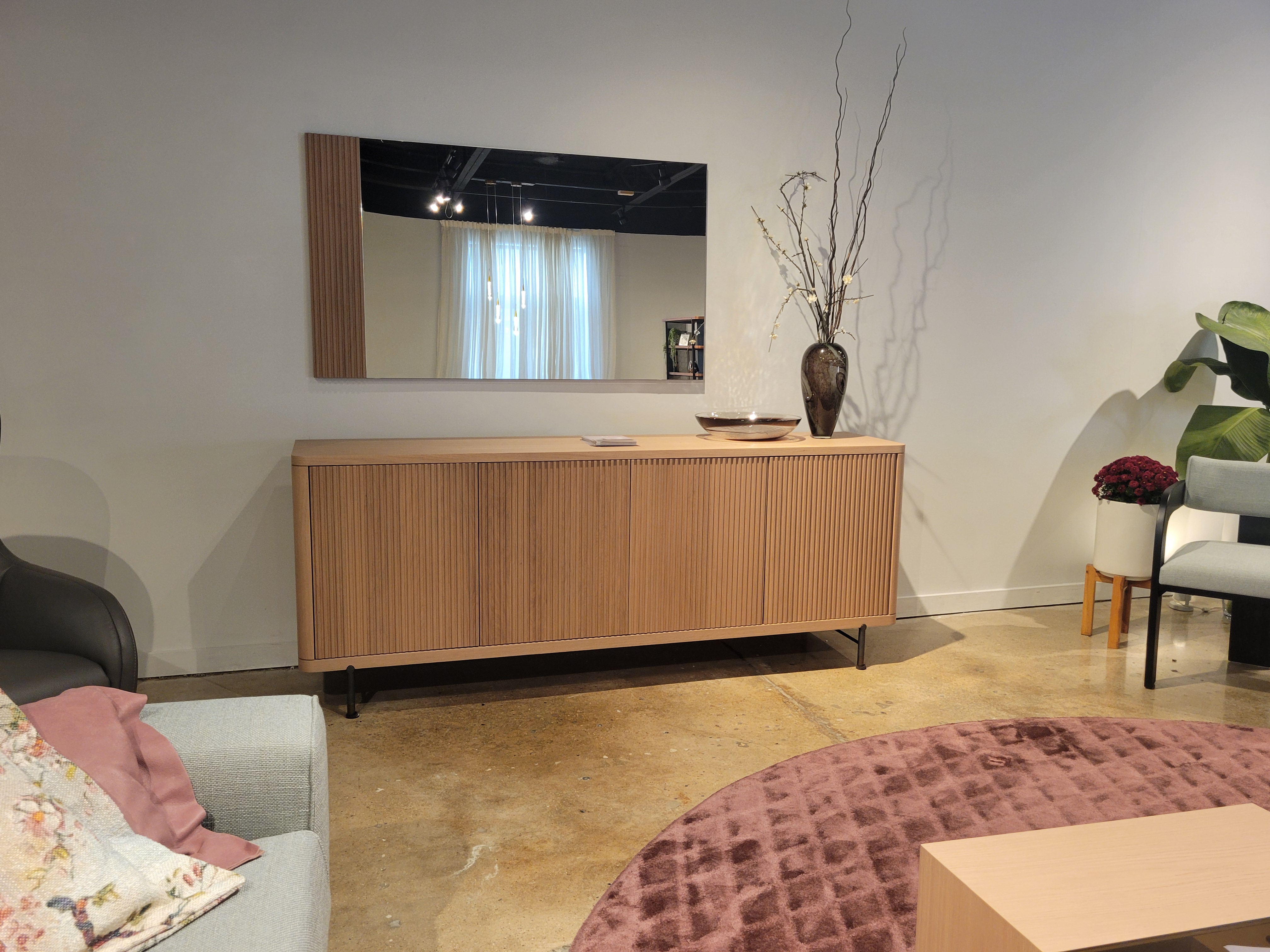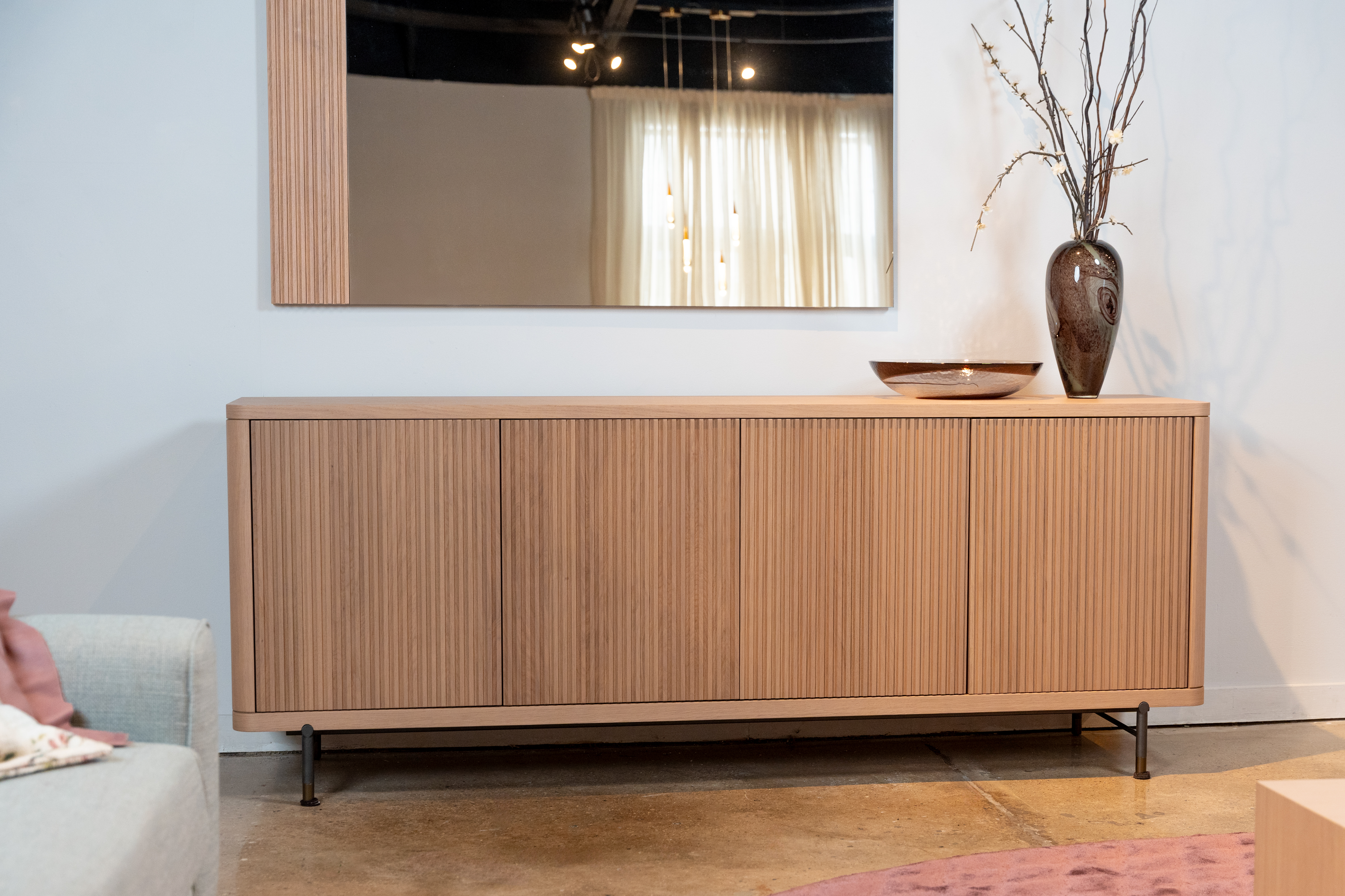 Fidji Sideboard, 4x Doors ; Finish: Light Oak w/ Dark Grey Metal legs and Dark Bronze Sabots ; Sideboard Dimensions: W86 5/8" x H33 7/8" x D19 5/8" ; Email: info@planumfurniture.com if you are interested