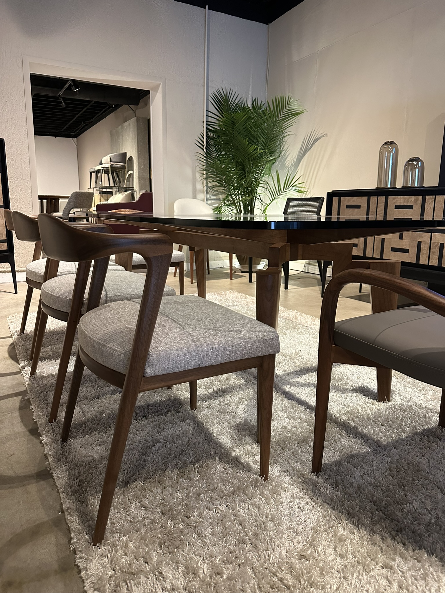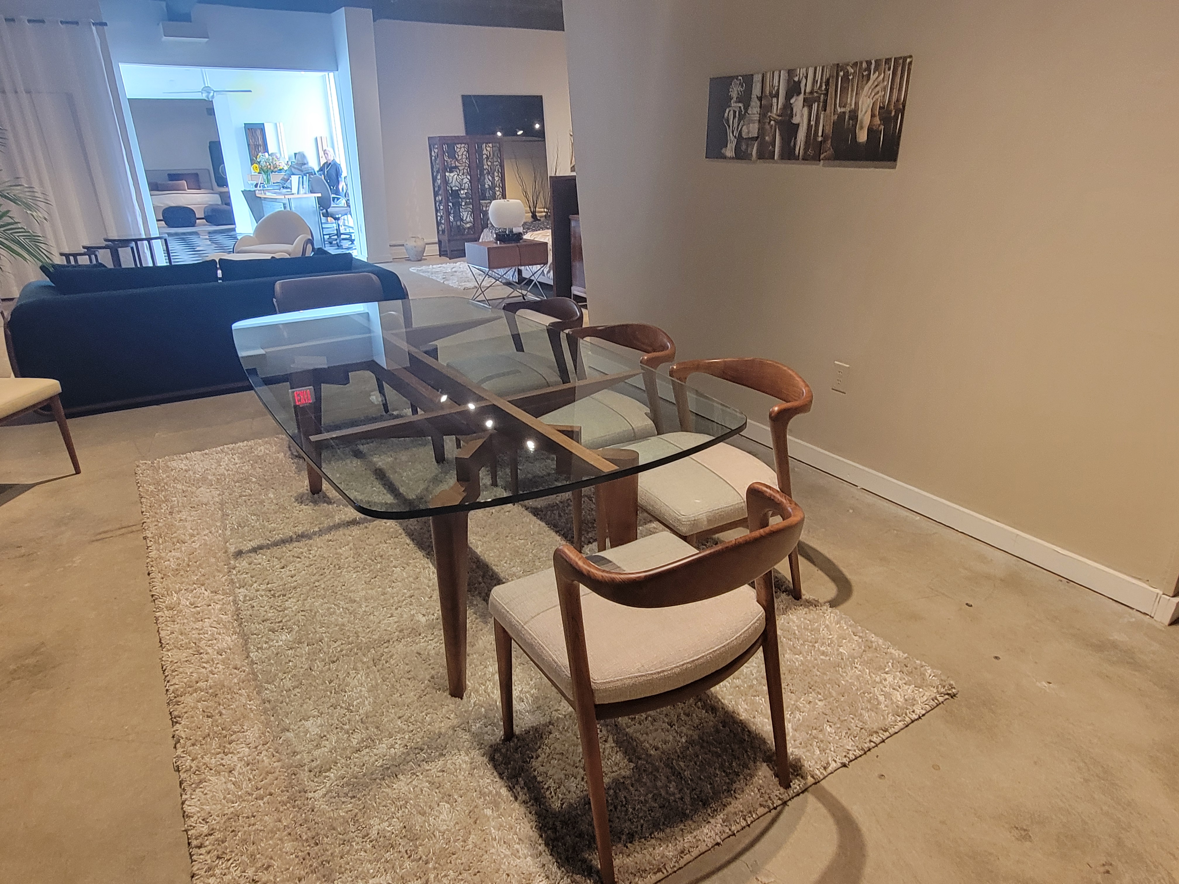 4x Belt Side Chairs ; Finish: Solid Walnut w/ Fabric Nepal #14 ; Dimensions: W20 7/8" x H19 1/2" x D21 1/4" ; Email: info@planumfurniture.com if you are interested