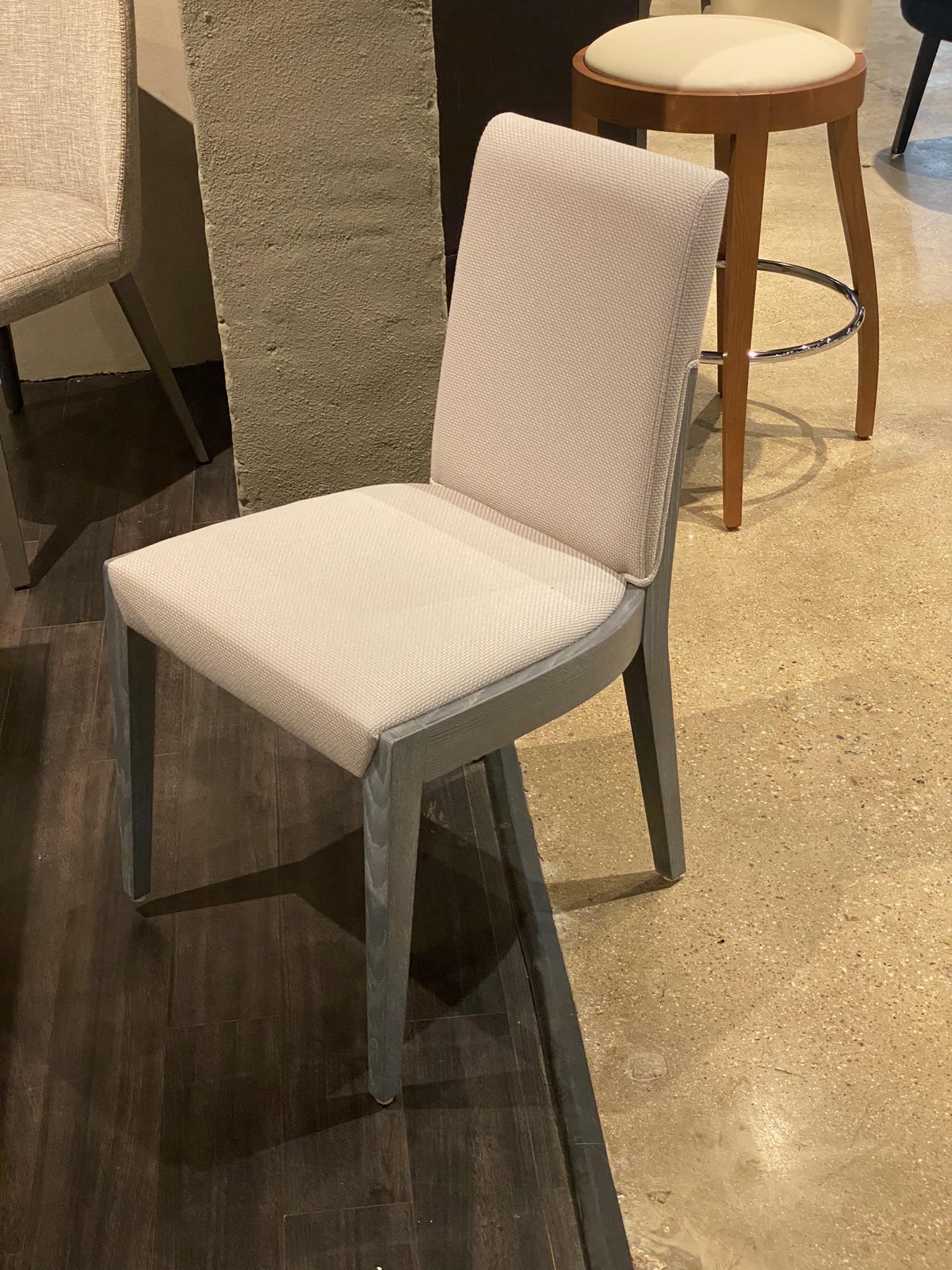 6x Juhl Side Chairs ; Finish: Steel Gray White Washed Oak w/ Fabric Braid #3026 ; Dimensions: W18 7/8" x H33 7/8" x D18 1/8" ; Email: info@planumfurniture.com if you are interested