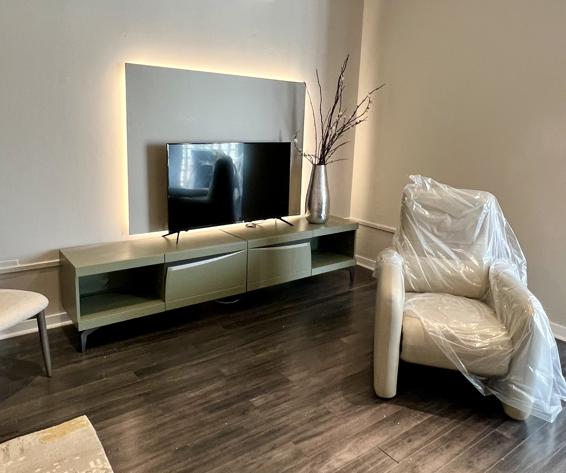 Iris Media, 2x Doors (No TV Panel); Finish: Oliva Lacquer w/ Accents in Cafe Lacquer & Bronze Metal Legs ; Left Side TV Base Dimensions: W47 1/4" x H21 5/8" x D17 3/4" ; Right Side TV Base Dimensions: W47 1/4" x H21 5/8" x D17 3/4" ; Email: info@planumfurniture.com if you are interested