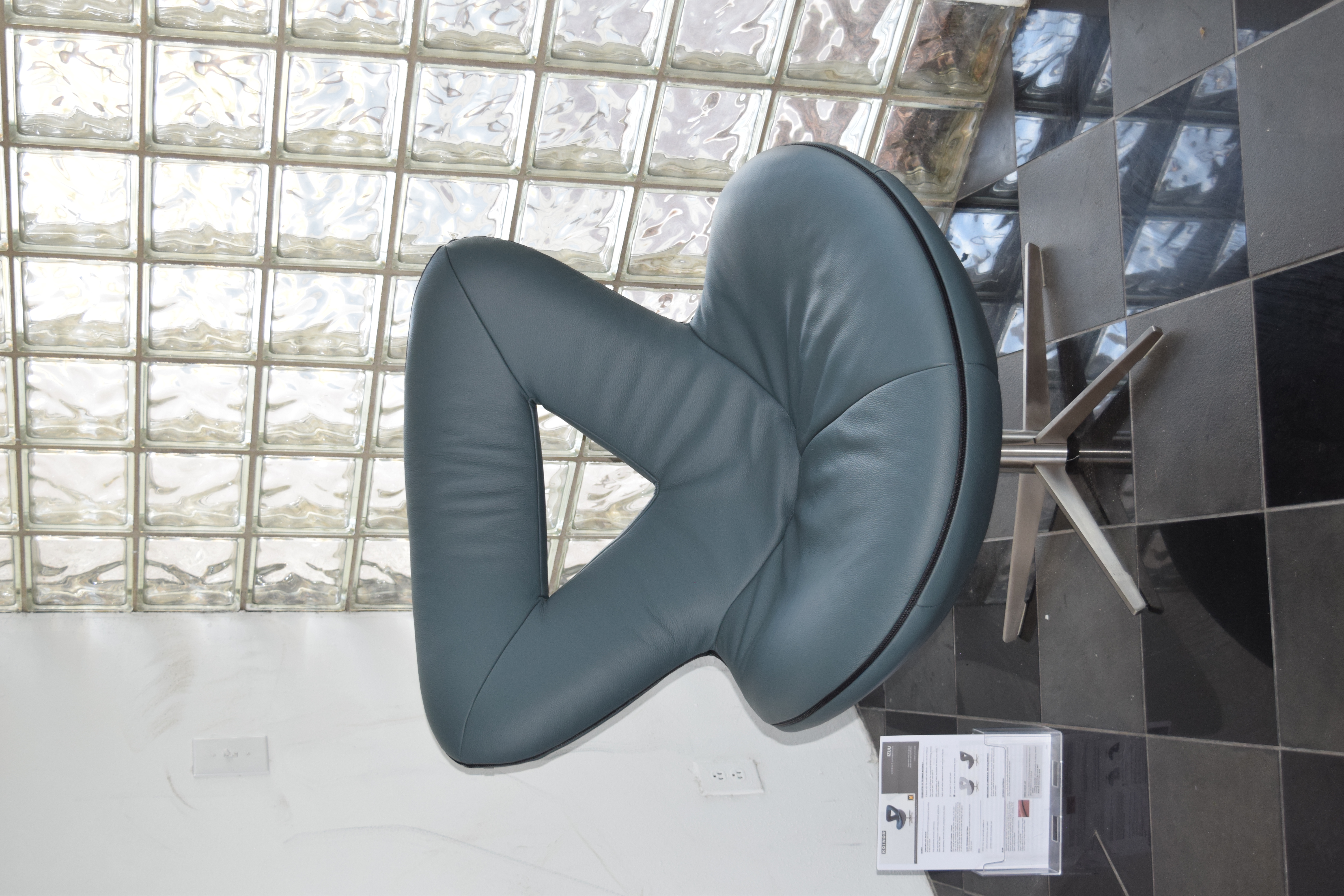 Izuu Swivel Chair ; Finish: Leather B Bull- Lago w/ Metal legs in Powder Coated Black ; Dimensions: W33 1/2" x H38 1/4" x D35 1/2" ; Email: info@planumfurniture.com if you are interested