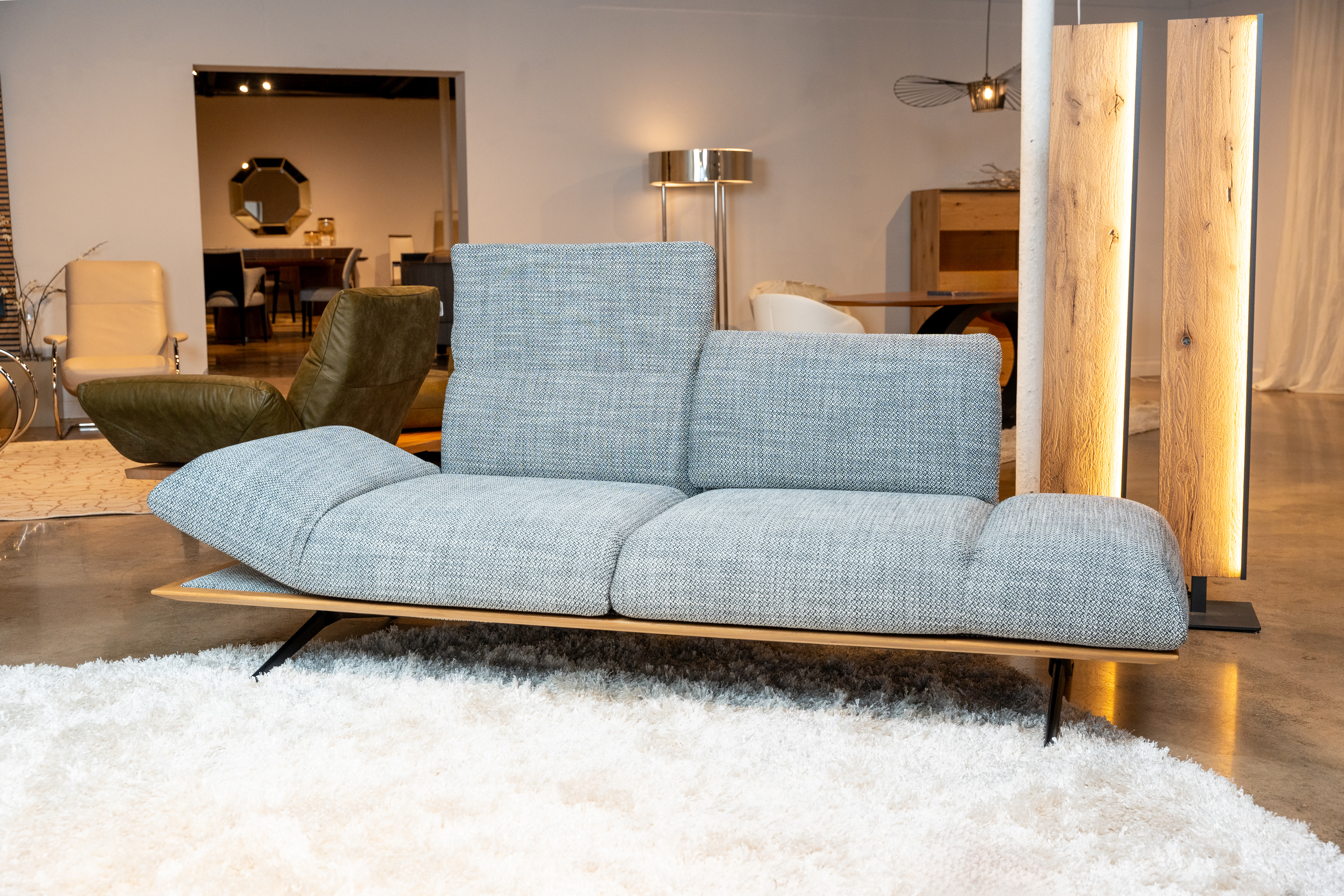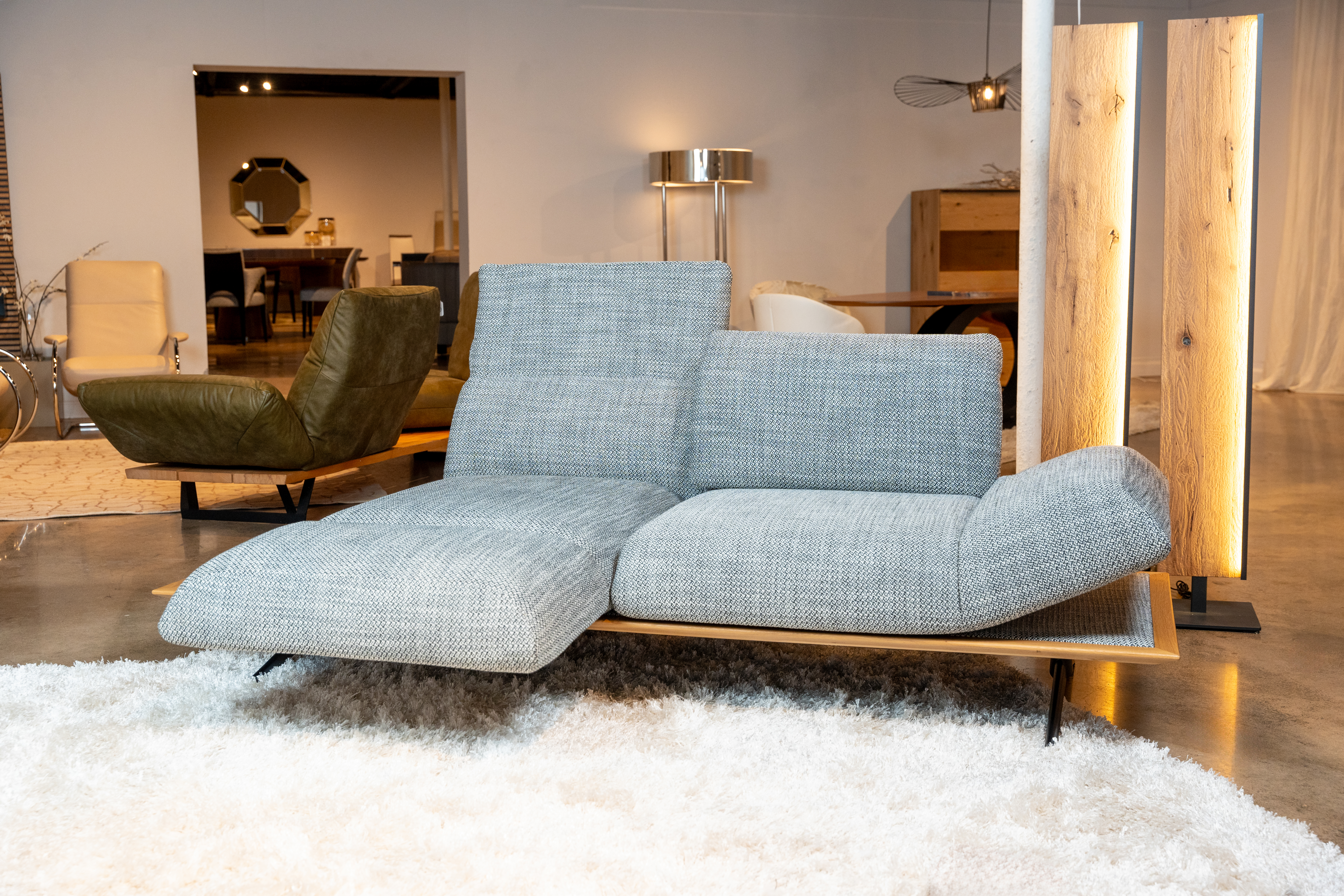 Fieno Sofa, 2x Rotating Seats, Arm Mechanism, Back Recline & High Back Mechanism ; Finish: Fabric Grade 13-Kaleido #13 w/ Frame in Wild Natural Oak & Black Metal Legs ; Dimensions: W93" x H34 1/4" x D34 1/4" ; Email: info@planumfurniture.com if you are interested