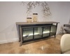 Finish: CV28 Oak Top & Legs with Grey Glass Fronts, Accents in FE01 Painted Iron ;